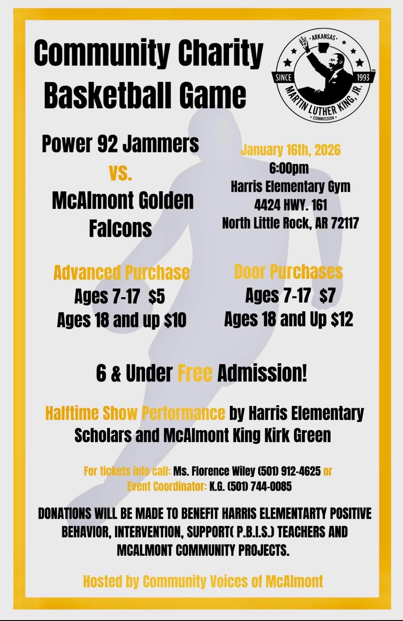 Join us for an exciting charity basketball game during King Week, bringing the community together to honor Dr. Martin Luther King, Jr.’s legacy of unity, service, and empowerment!