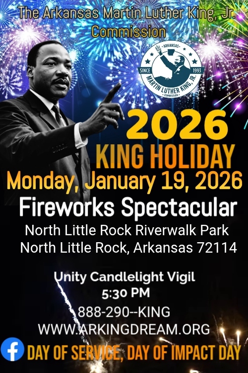 The Arkansas Martin Luther King, Jr. Commission announces it 2021 MLK Day of Service, King Holiday Day of Impact. The event will be hosted virtually on the Commission’s various platforms, premiering globally on Dr. King’s birthday, Friday, January 15, 2021, on the following platforms: